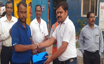 Best Safety award to Mr. Baleshwar Ageria(Driver-Automobile) by Ghato Branch Head for Best Commitment of Safe Driving-Mega Ghato West Bokaro Branch)