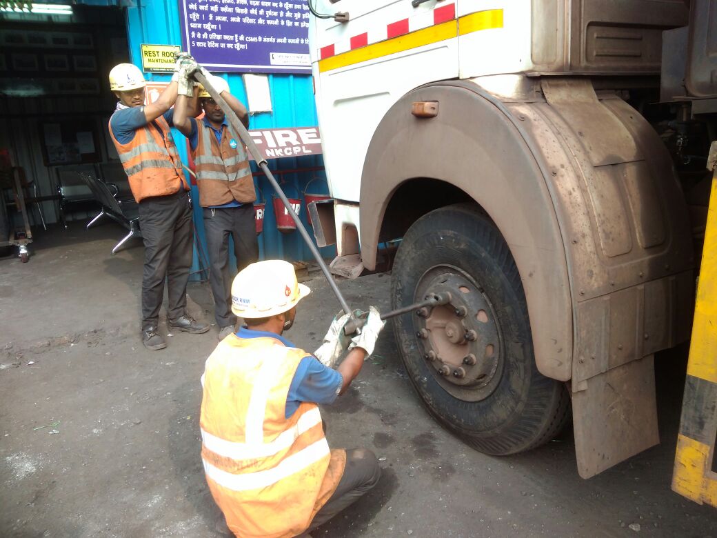 As the primary operational task of the company is of transportation of Industrial Products, hence the company deals with Heavy Vehicles like, Dumpers, Trailers, Hyva etc. The maintenance of the same automatically becomes of huge impetus and concern for the company. One such maintenance task is Tyre Maintenance and checking which requires opening of the tyres.